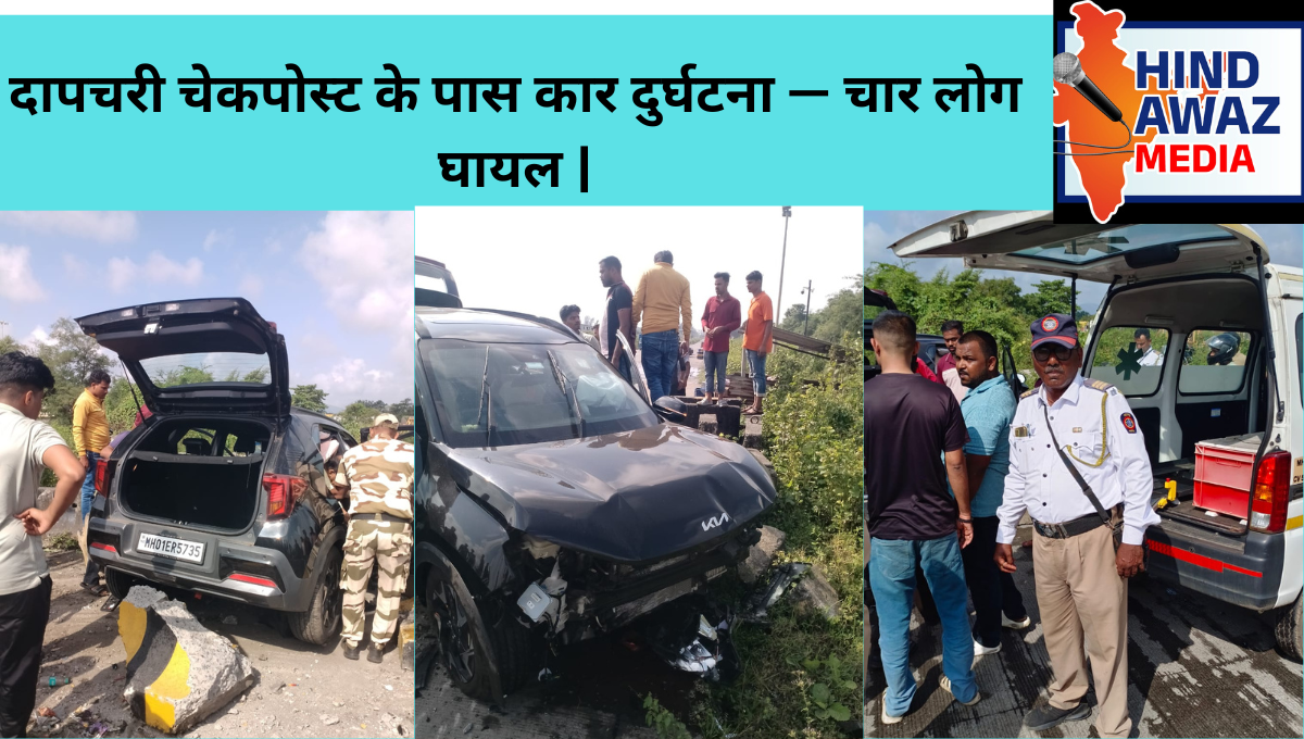 दापचरी चेकपोस्ट के पास कार दुर्घटना — चार लोग घायल