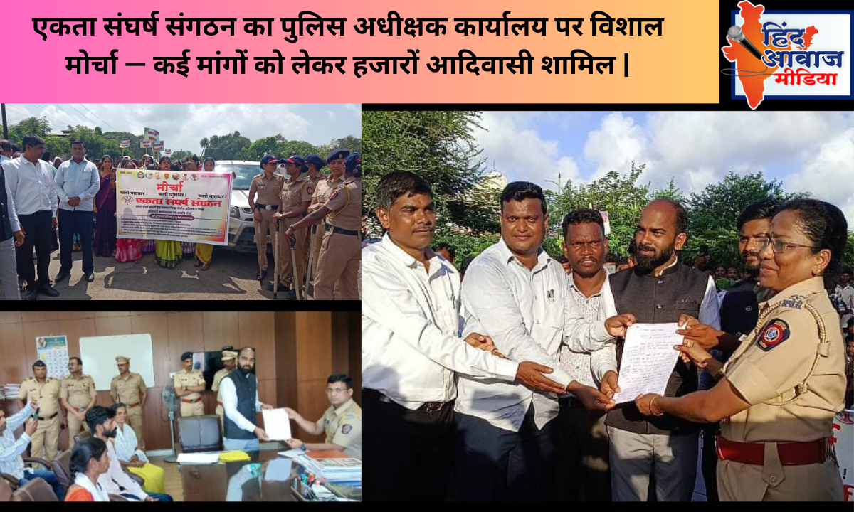 एकता संघर्ष संगठन का पुलिस अधीक्षक कार्यालय पर विशाल मोर्चा — कई मांगों को लेकर हजारों आदिवासी शामिल |