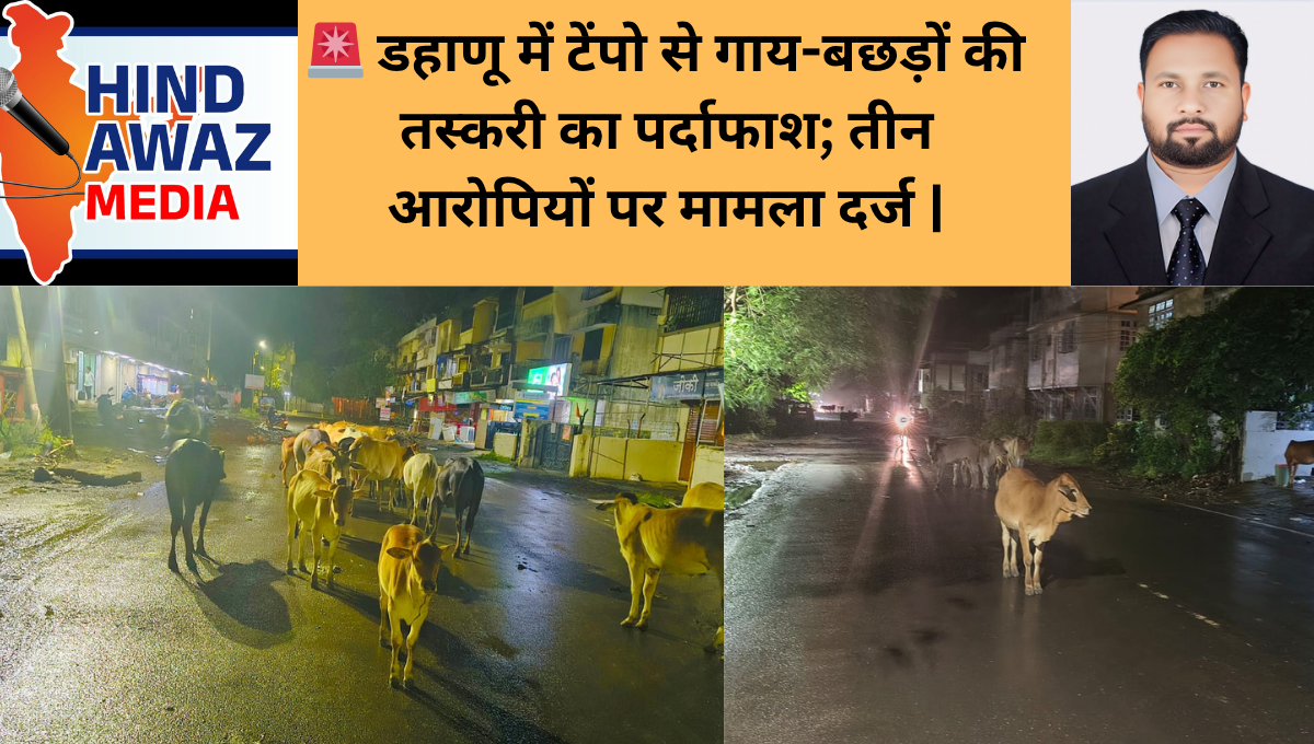 🚨 डहाणू में टेंपो से गाय-बछड़ों की तस्करी का पर्दाफाश; तीन आरोपियों पर मामला दर्ज |