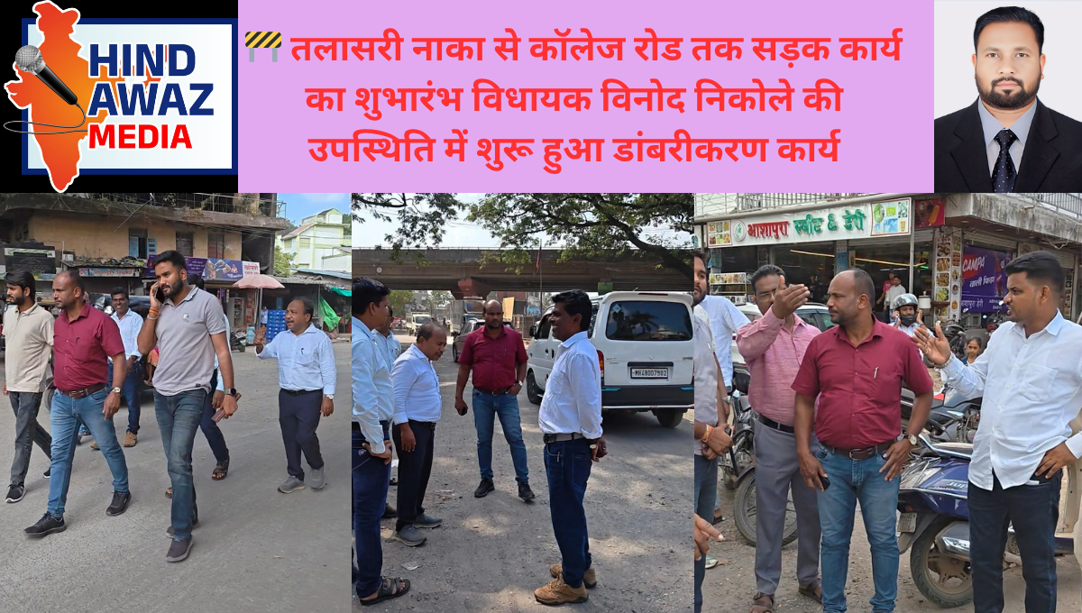 🚧 तलासरी नाका से कॉलेज रोड तक सड़क कार्य का शुभारंभ विधायक विनोद निकोले की उपस्थिति में शुरू हुआ डांबरीकरण कार्य |